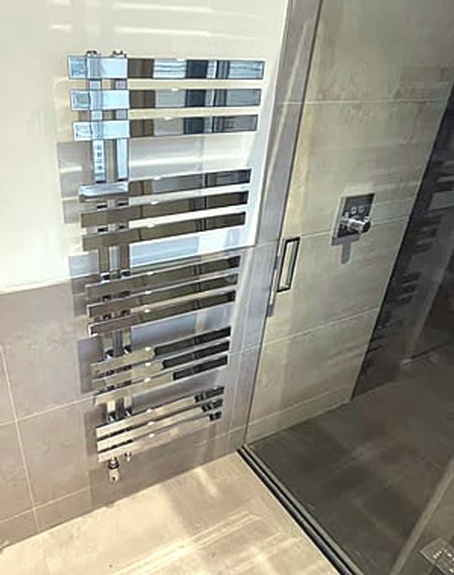 *The image on the left is a detail from a recently installed shower room in a private home. We’re comfortable taking on large or small jobs for private customers.